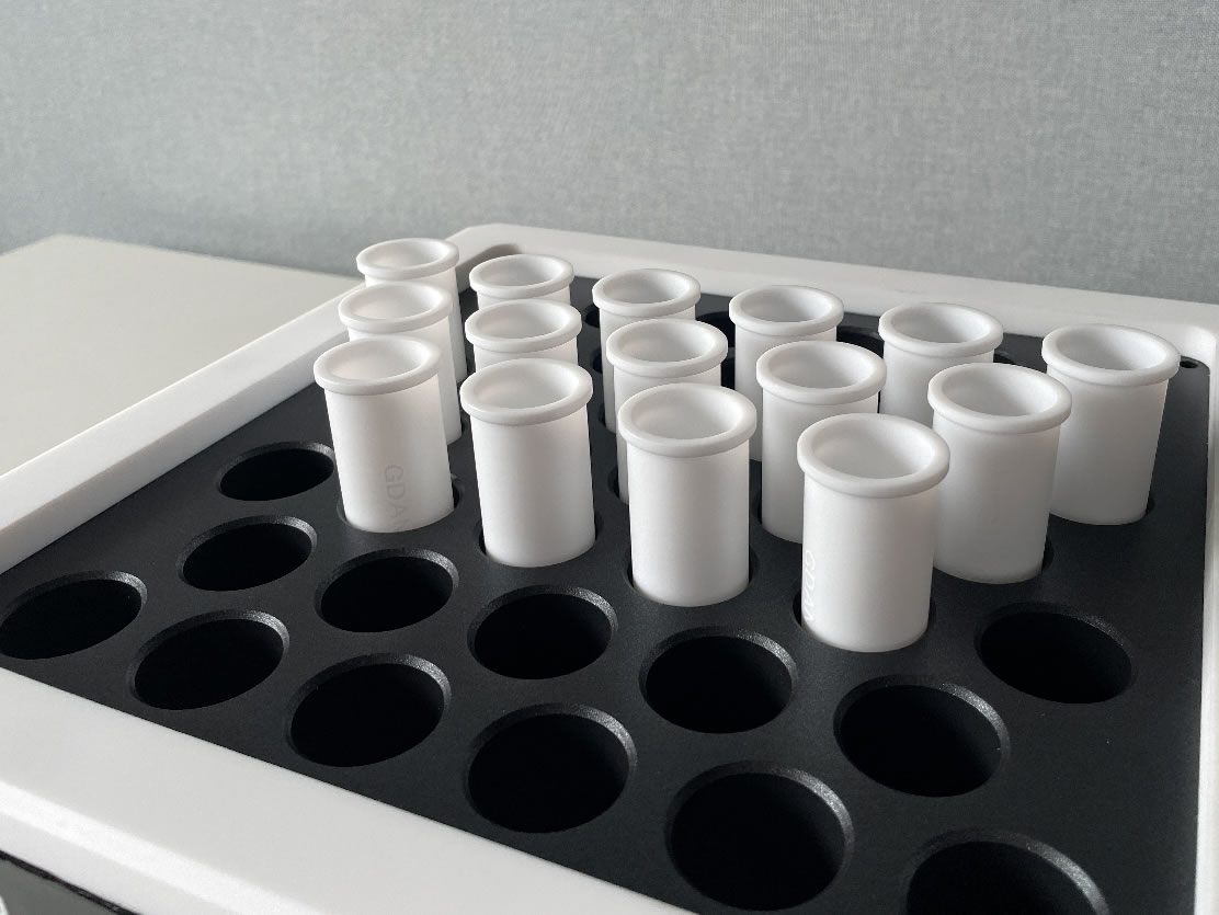 高純石墨體具有良好的導(dǎo)熱性,為所有樣品提供均勻的熱量,消除了加熱盲點(diǎn)。立體包裹式加熱,熱量損失更少,效率更高,彌補(bǔ)了電熱板加熱的不足。