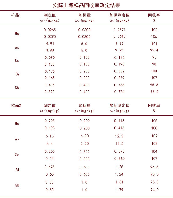 實(shí)際土壤樣品消解測定回收率結(jié)果